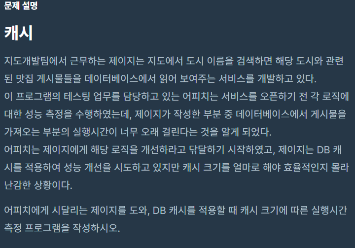주의점 : 캐시 사이즈가 0일 경우도 생각해야 한다.