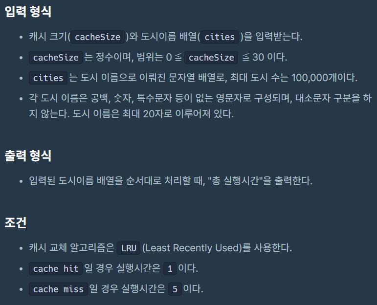 아래는 LRU 알고리즘을 사용한 풀이이다.
